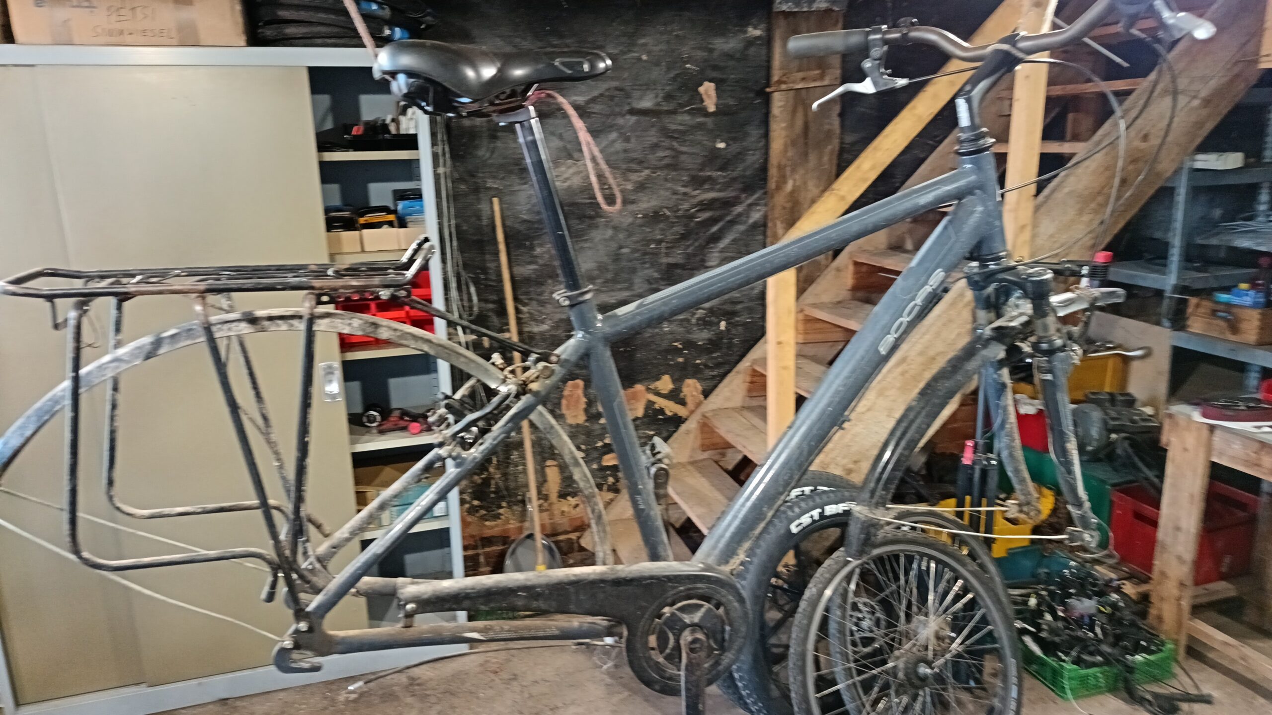 Im Schrott zu wühlen macht Spaß! Es finden sich oft viele tolle Teile an kaputten Fahrrädern, wenn man einfach nur auf Entdeckungsreise geht. Herrlich! Natürlich stand mir gerade quasi die Luxusausgabe des Fahrradschrottelns zur Verfügung: Ein kleiner „Stall“ voll mit ausgedienten Fahrrädern, teilweise vorgeschlachtet.