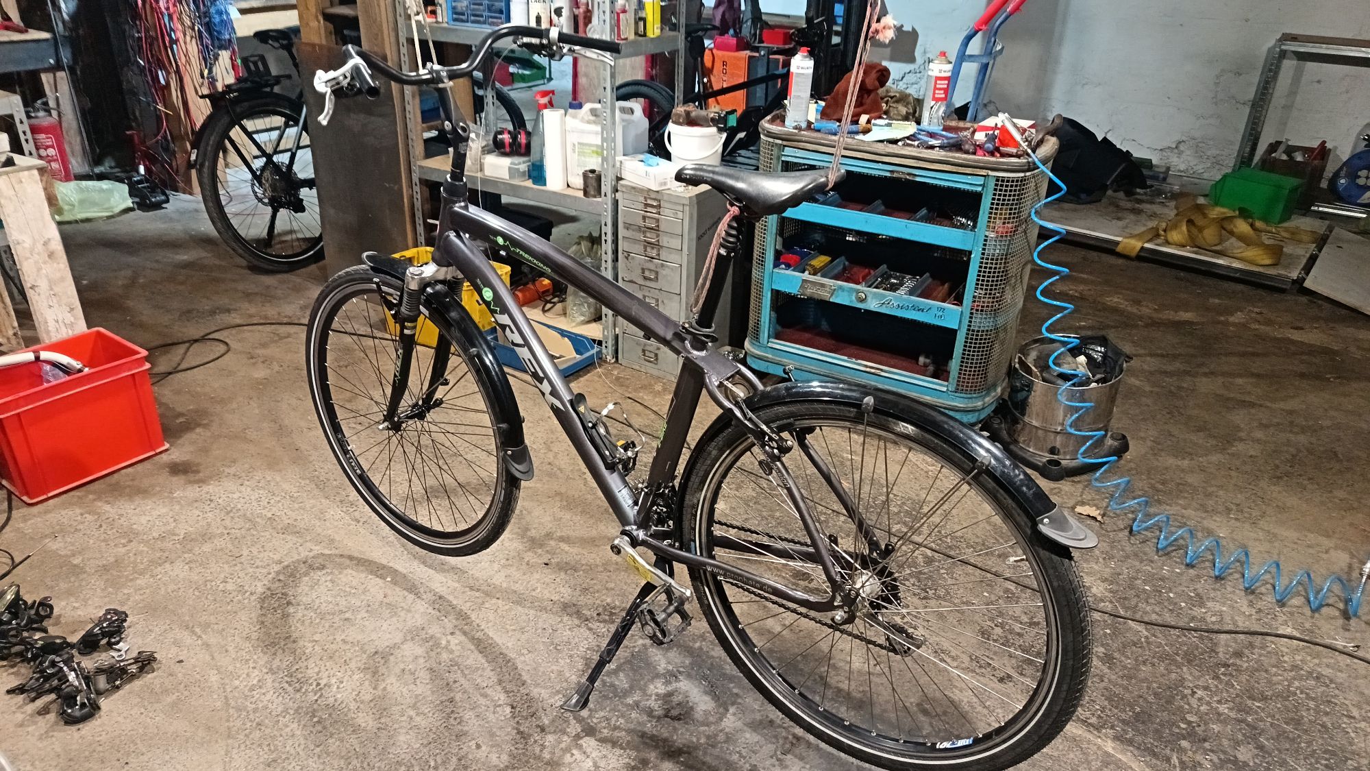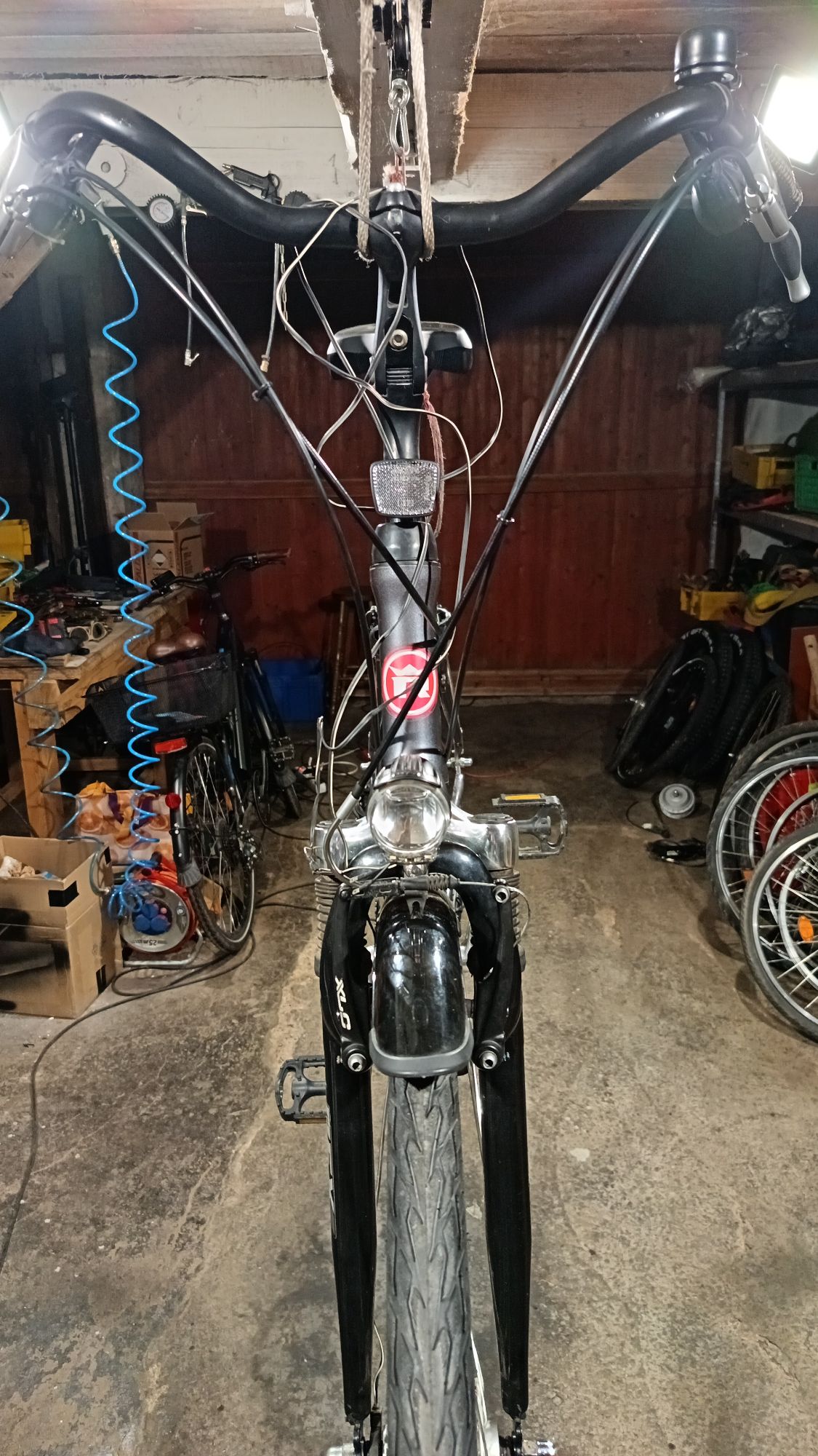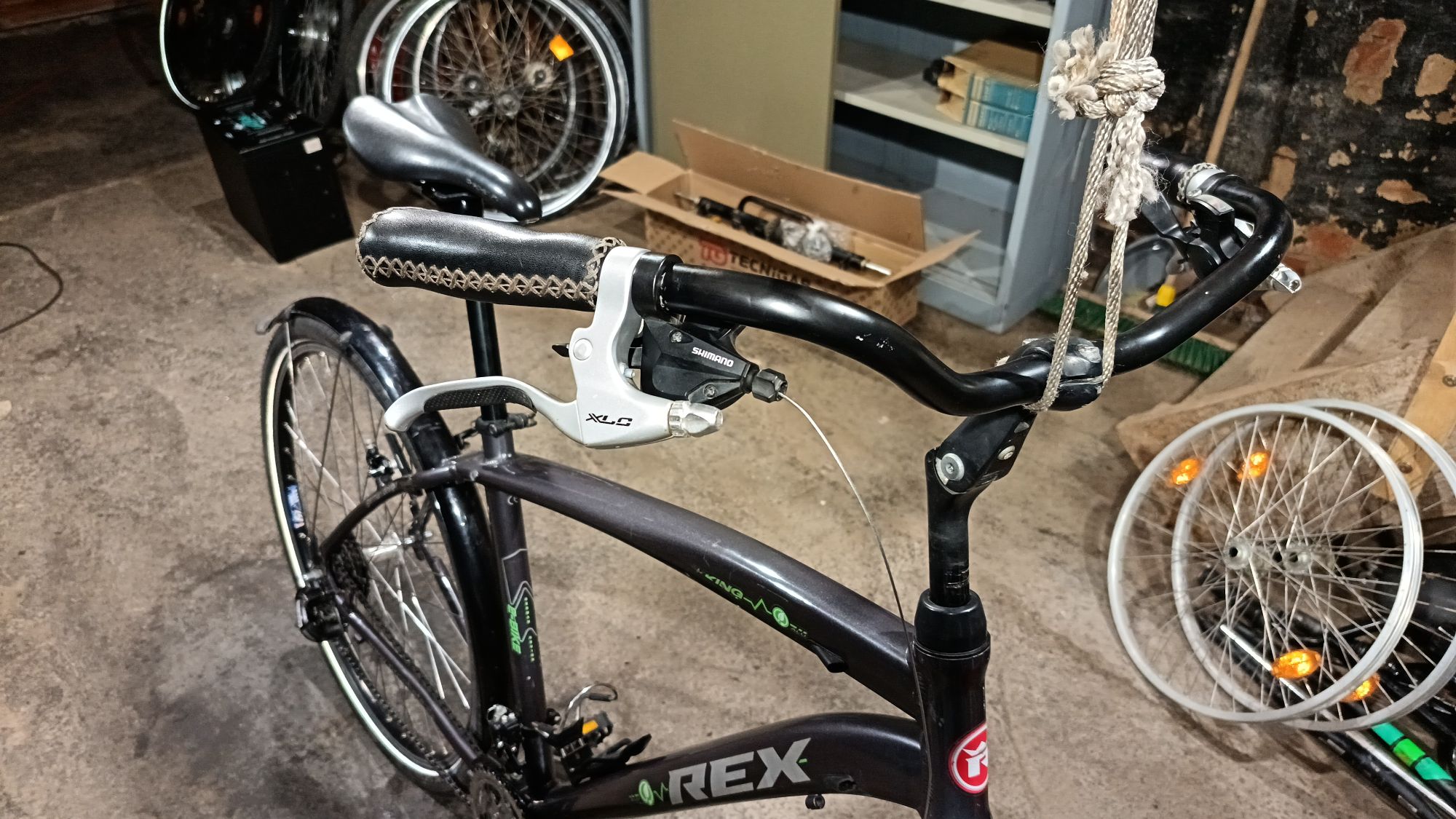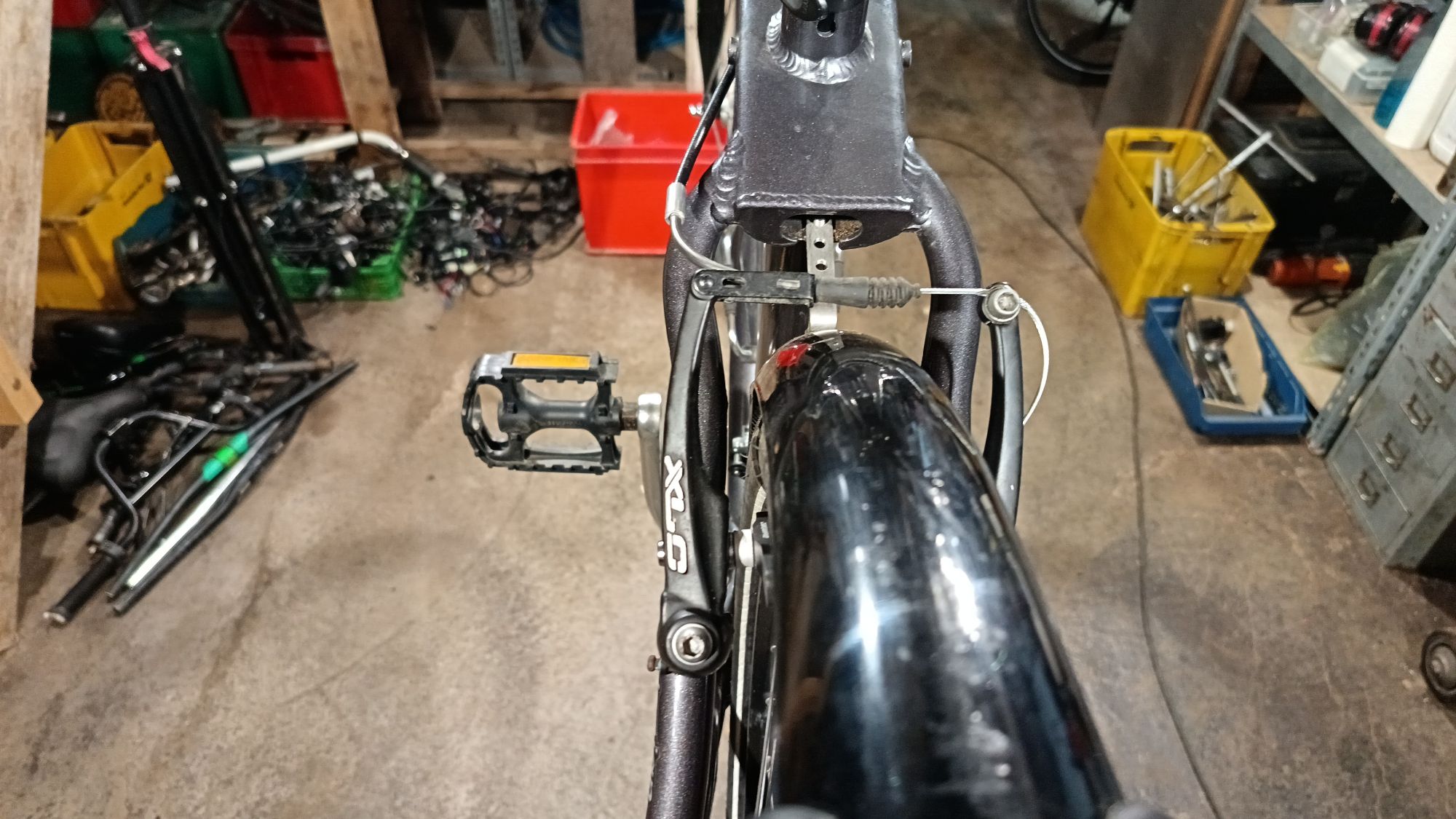 Das Projekt Rex nähert sich der Fertigstellung. Ich bin auf dem Hof schon etwas (ohne Bremsen und ohne Schaltung) gefahren, auf jeden Fall war das spannend, hat auch Spaß gemacht. Bremsen mussten dringend her, das wurde mir dabei klar. 😉