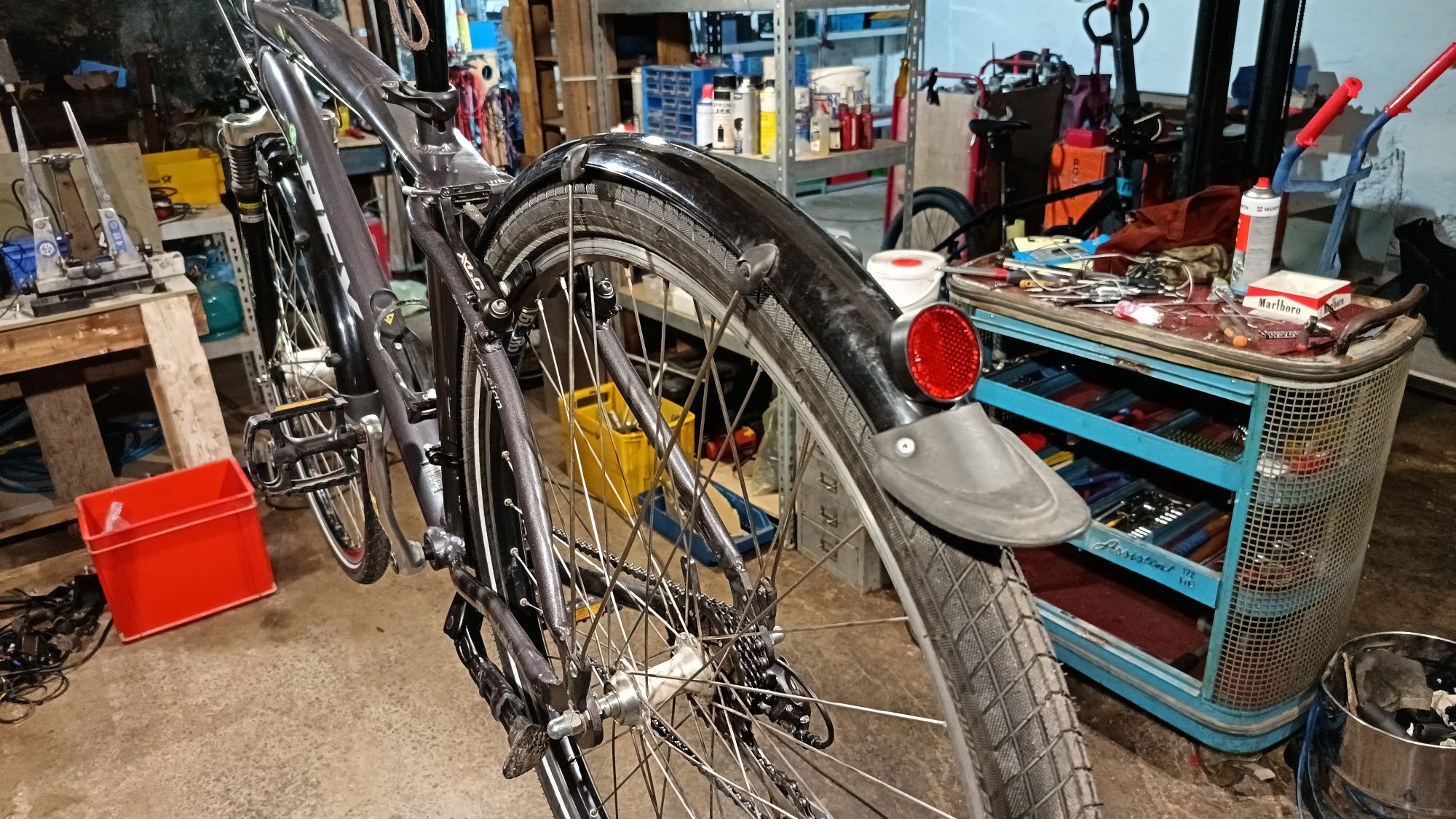 Eigentlich sollte Rex keine Lichtanlage bekommen, aber es gab nur ein gebrauchtes Vorderrad mit silbernen Speichen, das hatte halt einen Nabendynamo. Es war auch noch ein B&M Lumotec Cyo-T Senso plus Scheinwerfer da, der passt gut zum Nabendynamo. Das Rücklicht ist eine Nuss, die es noch zu knacken gilt. Es liegt noch ein B&M 2C plus herum, das hat 2 LED eingebaut, ziemlich an den Rändern. Das finde ich spannend, vielleicht baue ich das an einer Stelle an, wo normalerweise kein Rücklicht hin gehört. Viele Möglichkeiten zum Anbau habe ich ja nicht und ich fand auch im Netz keine kleinen Dynamo-Rückleuchten, die mich in irgendeiner Weise ansprachen…
